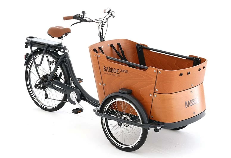 Das moderne elektrische Lastenfahrrad mit drei Rädern Das elektrische Babboe Curve ist ein modernes, luxuriöses Lastenfahrrad mit drei Rädern. Es ist schön, hochwertig und intelligent gemacht und bietet praktische Extras, wie dicke Reifen, einen kindgerechten Antirutsch-Einstieg und eine versenkte Beleuchtung. Dank der speziellen Maxi-Cosi-Halterung können Babys mitgenommen werden. Es gibt dann noch zusätzlichen Platz für zwei weitere Kinder. Dank der elektrischen 8-stufigen Tretunterstützung haben Sie immer Rückenwind!
