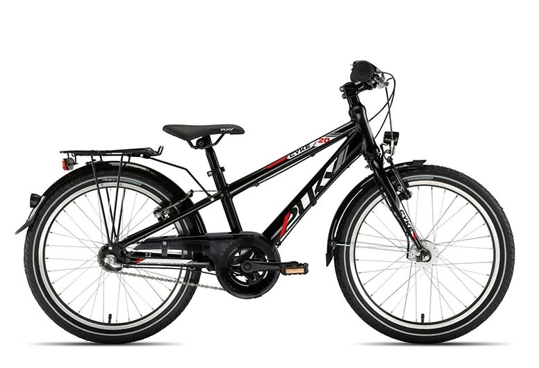 Das neue PUKY CYKE 20-3 ist der Nachfolger unserer bewährten PUKY Crusader Serie für coole Jungs und Mädels. Mit einer ergonomischen Linienführung und perfekten Ausstattungsmerkmalen ist CYKE 20-3 Tag für Tag zuverlässig. Ob die Fahrradtour mit den Eltern oder das Wettrennen mit den Freunden. PUKY CYKE ist für Kinder ab 6 Jahren und einer Körpergröße ab 122 cm geeignet. Der äußere Erscheinungsbild trügt die Technik nicht. Verbaut sind beim PUKY CYKE 20-3 ein leichter Alurahmen, welcher mit einer stoßfesten Pulverbeschichtung versehen ist. Für schnelle Fortbewegung sorgt die zuverlässige Shimano Nexus 3-Gang Nabenschaltung. Für eine gute Sicht hat das PUKY CYKE 20-3 einen LED-Frontscheinwerfer mit An/Aus-Automatik und ein LED-Rücklicht mit Standlicht-Funktion angebracht. Die laufruhige RUKY Bereifung erstrahlt dank auffälliger Reflexstreifen bei Lichteinfall in der Dunkelheit. Für weitere Sicherheit befinden sich an unserem PUKY CYKE 20-3 Sicherheitslenkergriffe, rutschfeste Kinderpedale mit Reflektor und hochwertigen SKS Schutzbleche mit Kantenschutz. Der Gepäckträger erlaubt Beiladung und ist äußerst stabil. Die neben den V-Brakes integrierte Rücktrittbremse bringt die Kids sanft zum stehen. Erhältlich ist PUKY CYKE 20-3 in neutralem schwarz.